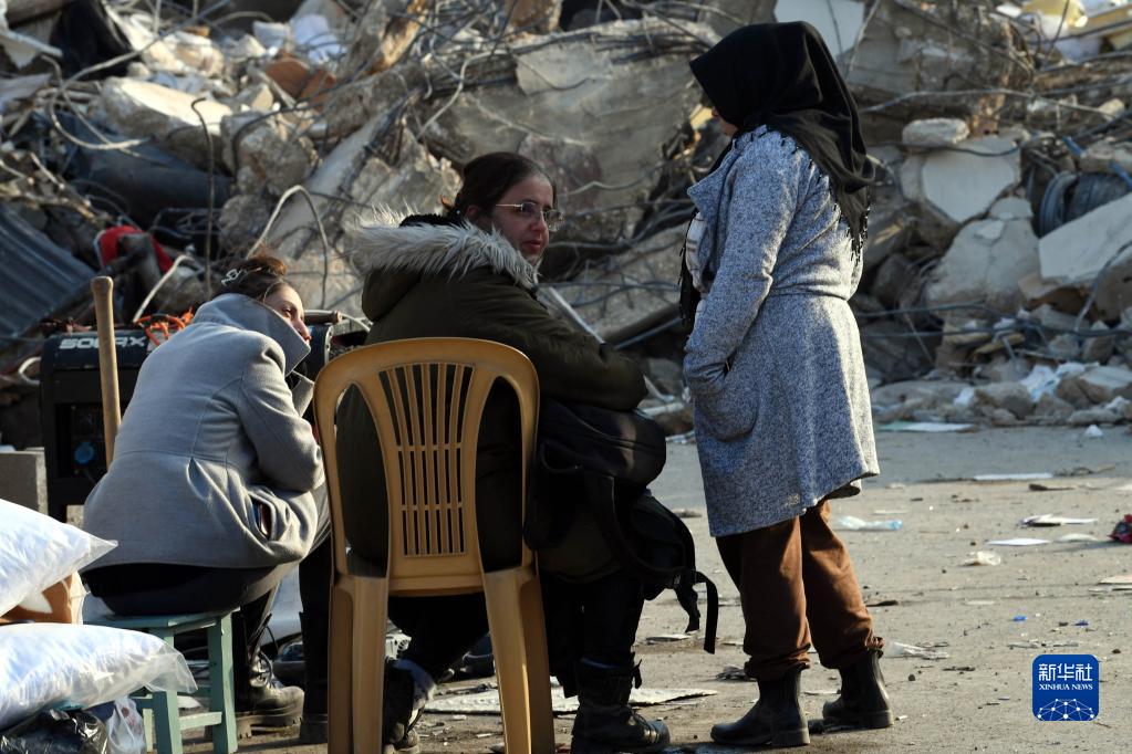 2月10日,人们聚集在土耳其哈塔伊省安塔基亚市的一处地震废墟旁。 土耳其卫生部长科贾10日午夜说,土耳其南部靠近叙利亚边境地区6日发生的强烈地震已在土造成20213人死亡、80052人受伤。科贾说,在受灾的10个省份中,哈塔伊省灾情最为严重,地震死伤人数分别为6205人和17823人。 新华社记者 沙达提 摄