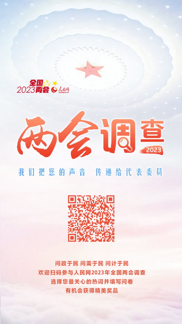 人民网北京2月1日电 (任一林、宋晨)人民网2023年全国两会调查于今日正式上线,这是人民网连续22年开展全国两会调查。网友可通过人民网2023年全国两会调查专题、“人民网+”客户端、人民网法人微博、人民网官方微信、“学习大国”微信公众号等全媒体通道进入调查页面,选择您最关心的热词并填写调查问卷。