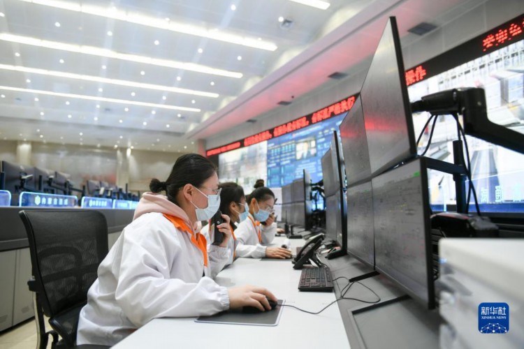 2月14日,工作人员在内蒙古通威高纯晶硅有限公司中控室监控生产设备运行情况。