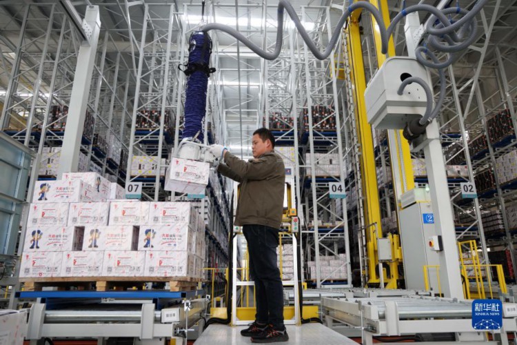 2月15日,在河北省邯郸市永年区一紧固件生产企业,工人在智能仓储车间操控设备装卸货物。