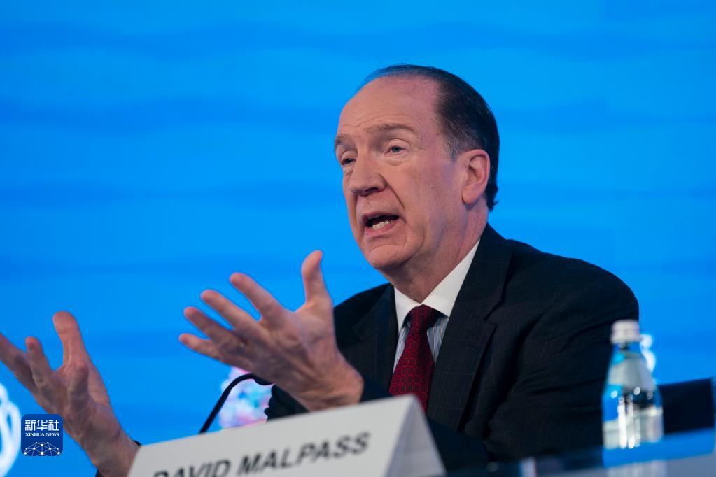 这张2022年10月13日拍摄的照片显示,在美国首都华盛顿,世界银行行长马尔帕斯出席记者会。