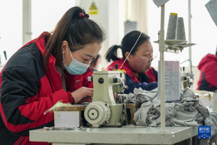 2月23日,在嘉祥县的一家手套生产企业,员工在车间内加工生产手套。