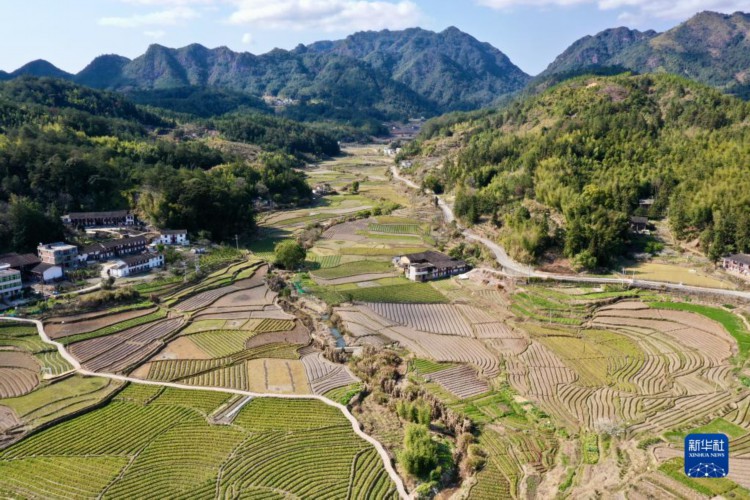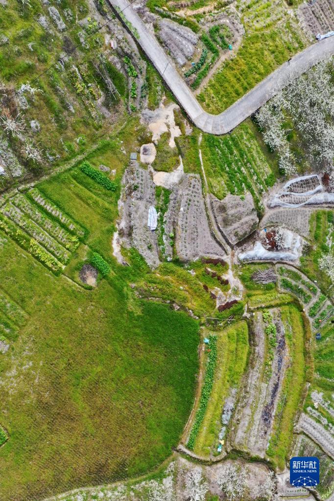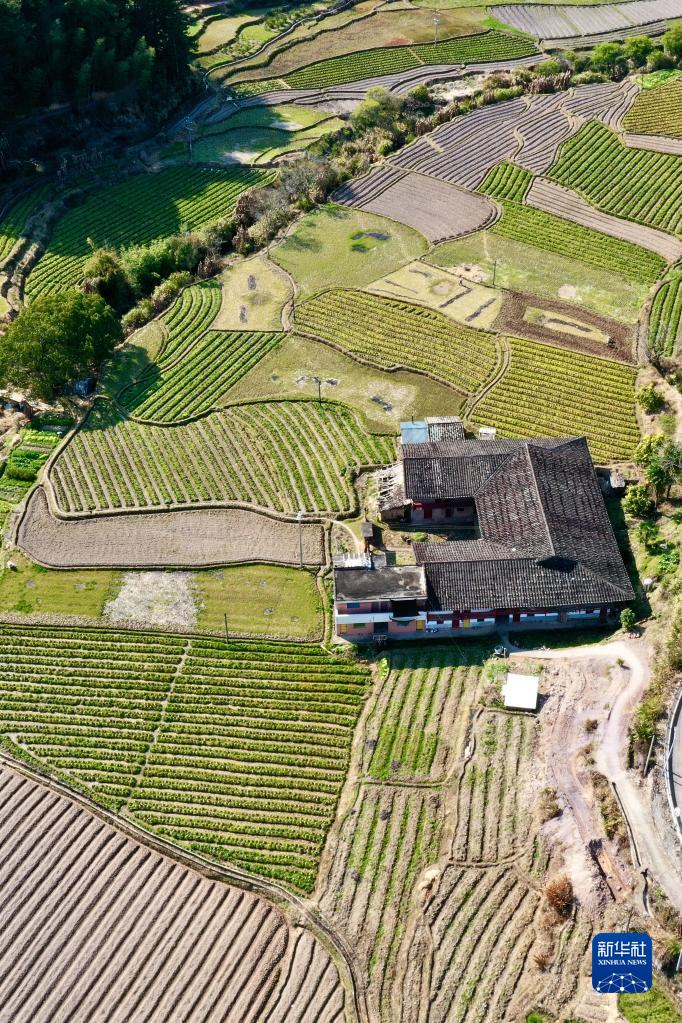 春耕时节,在福建省福州市乡村山岭间,一块块形状各异、五彩斑斓的田地犹如大地上的拼图,呈现别样的春耕画卷。