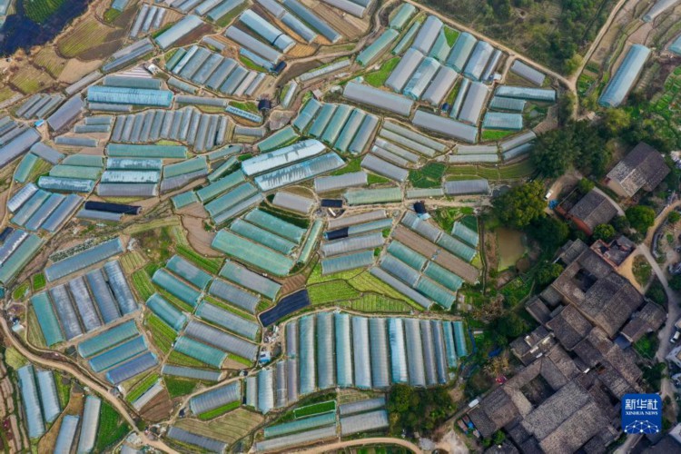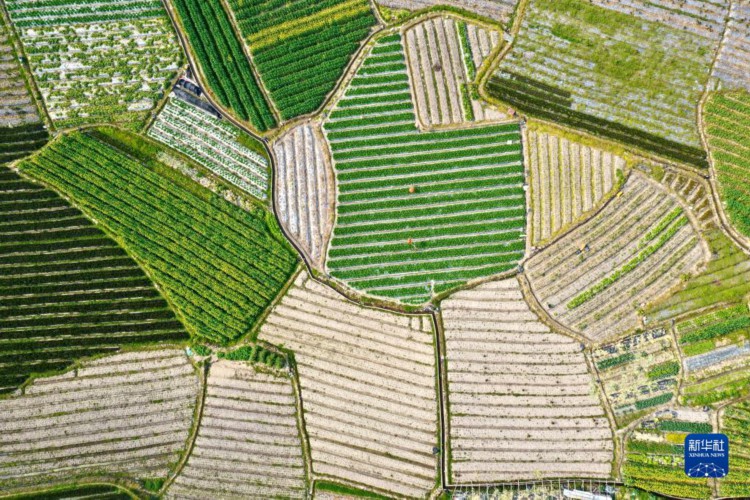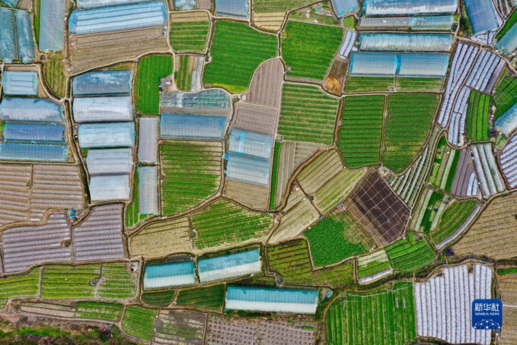 2月25日拍摄的福州市闽侯县荆溪镇蔬菜基地景观(无人机照片)。