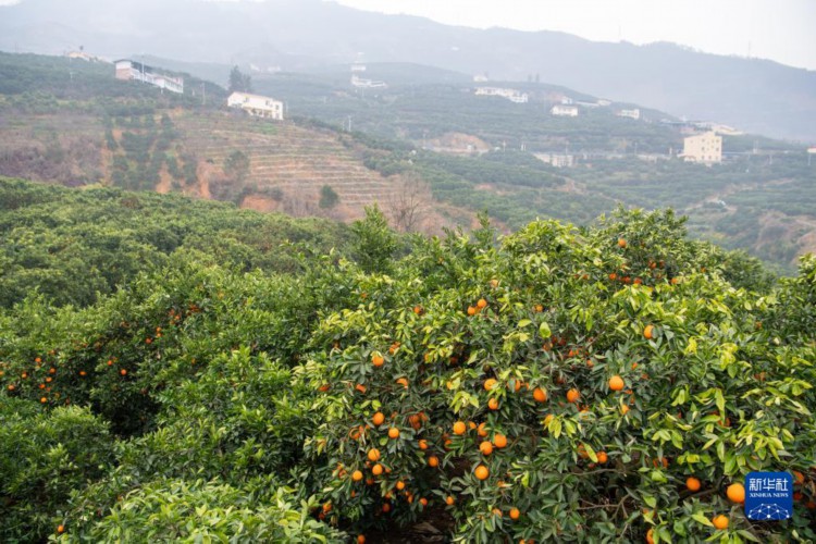 这是2月28日拍摄的位于重庆市奉节县永乐镇大坝村的脐橙种植园。
