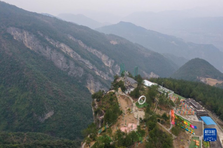 这是2月28日拍摄的重庆市奉节县青龙镇大窝社区景色(无人机照片)。这里曾是一个硫磺矿区,资源过度开采导致土地侵蚀、酸性严重、核心区域几乎寸草不生。近年来,当地关“硫矿”开“旅矿”,走上了一条绿色、生态的发展道路。