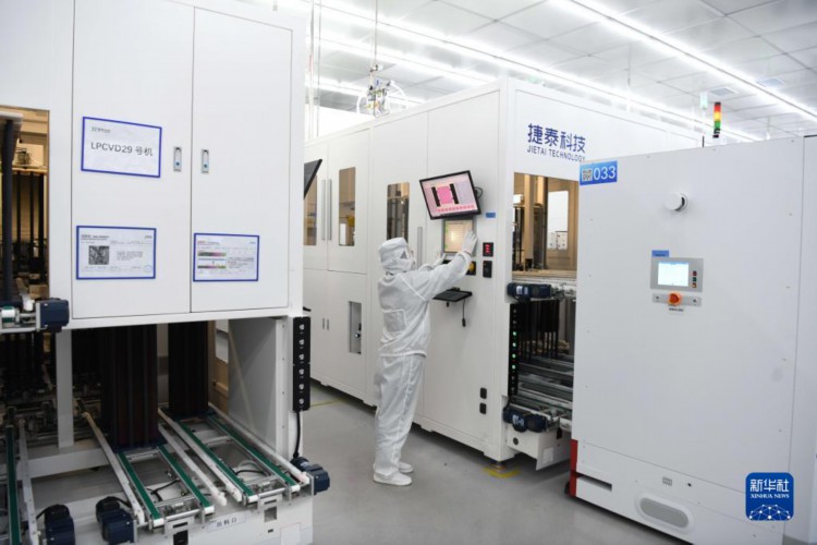 3月1日,工作人员在“顶山—汊河”跨界一体化发展示范区的一家太阳能电池片企业生产线上忙碌。