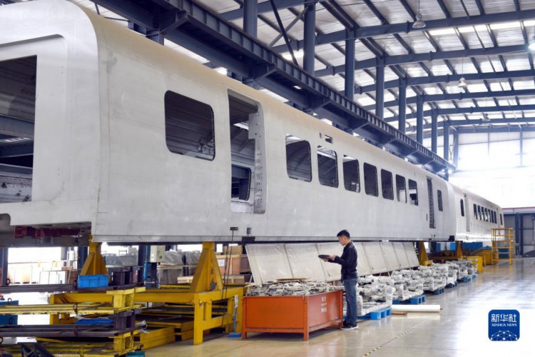 3月2日,工作人员在汊河轨道交通装备产业园的一家轨道交通装备企业生产线上忙碌。