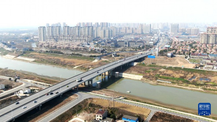 这是连接来安县汊河镇和南京市江北新区的汊河大桥(3月2日摄,无人机照片)。