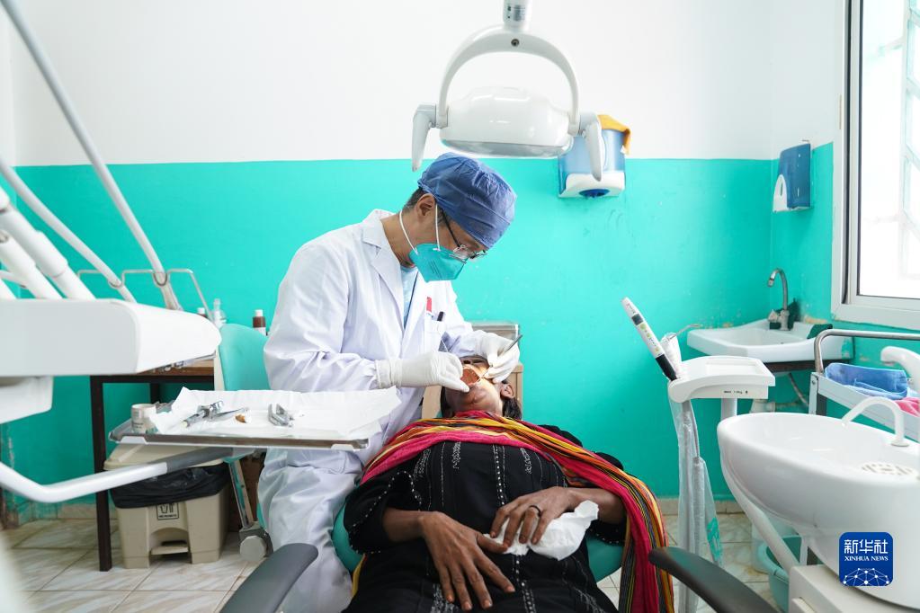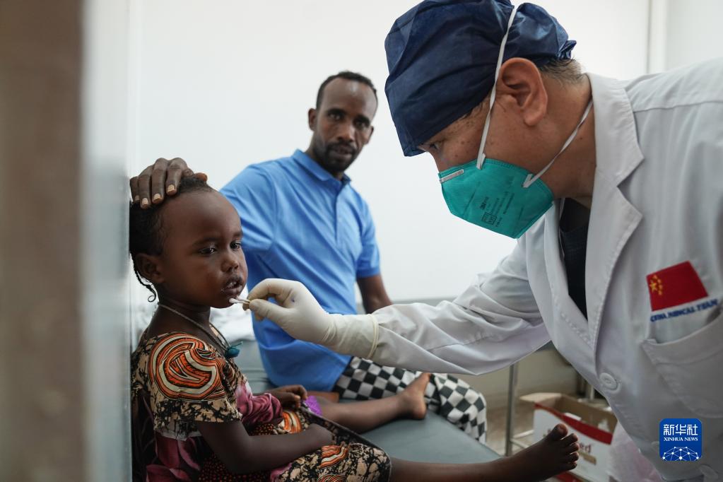 3月1日,在吉布提首都吉布提市贝尔蒂耶医院,中国第21批援吉布提医疗队医生王旭峰为当地患者诊治。 中国第21批援吉布提医疗队于2022年1月抵达位于非洲东北部亚丁湾西岸的吉布提,在首都吉布提市贝尔蒂耶医院开始为期15个月的援外医疗任务。截至2023年2月底,医疗队共完成门诊14658人次,急诊576人次,完成手术1168台。 新华社记者 韩旭 摄