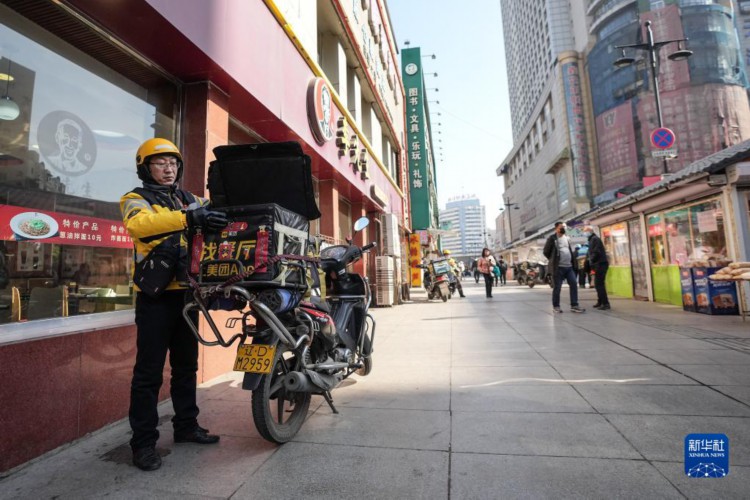 3月3日,“百姓雷锋”卢旭东在送外卖。