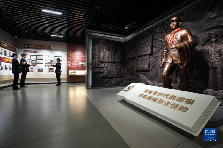 3月4日,“百姓雷锋”团队雷锋派出所的民警在派出所内的展厅交流宣讲雷锋精神的心得。