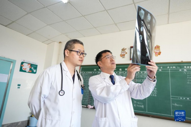 3月4日,“百姓雷锋”薛德刚医生(右)与同事交流病人的病情。