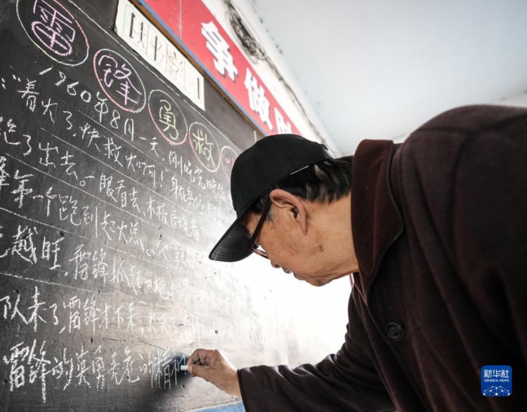 3月4日,“百姓雷锋”姚恩亮在制作黑板报。