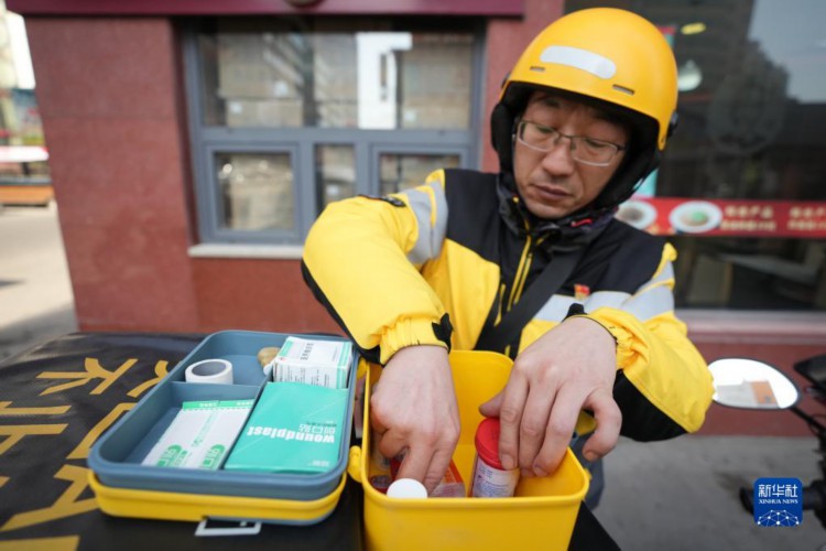 3月3日,“百姓雷锋”卢旭东在整理他自备的“医疗箱”,里面装着一些简单的药品,提供给需要帮助的人。