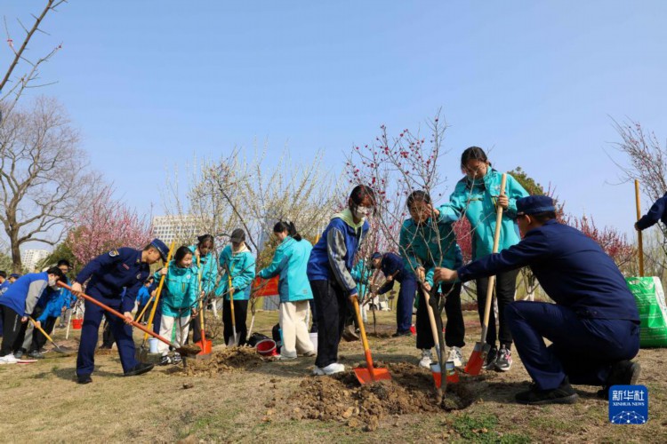 当日,合肥市包河区滨湖世纪社区联合辖区消防工作人员在雨水公园开展“手牵手护绿一起行”义务植树活动,绿化家园。