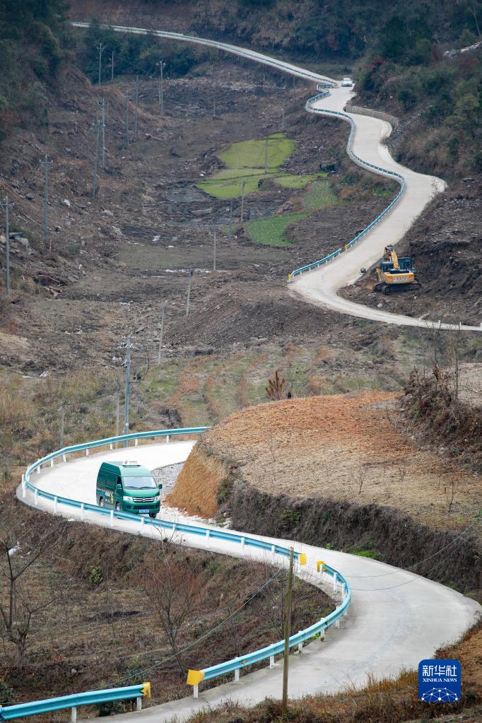 莫富元驾驶小货车在通往龙里县平西村的山间道路上行驶(2月14日摄)。