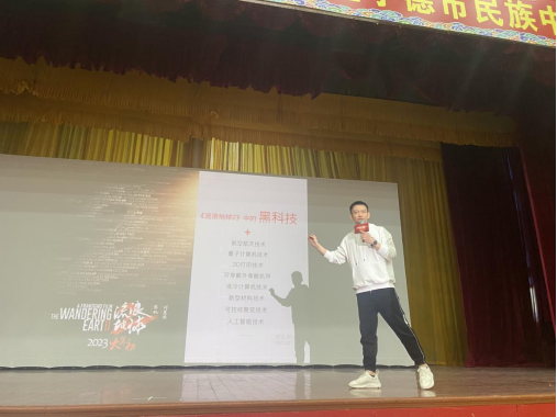 在互动之前,路演活动先进行观影环节。600多个座位的大礼堂座无虚席,《流浪地球2》中各种太空宇宙的特效场面,脑洞大开的设想具像画面,让现场惊叫声不断。
