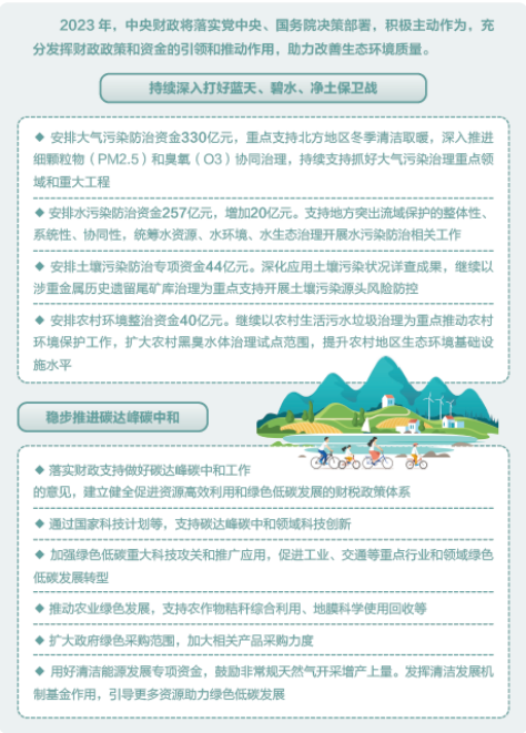 绿水青山就是金山银山。2023年,国家财政扎实推动绿色低碳转型。