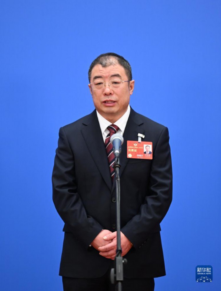 3月7日,全国政协十四届一次会议第二场“委员通道”集体采访活动在北京人民大会堂新闻发布厅举行。这是全国政协委员齐向东接受媒体采访。