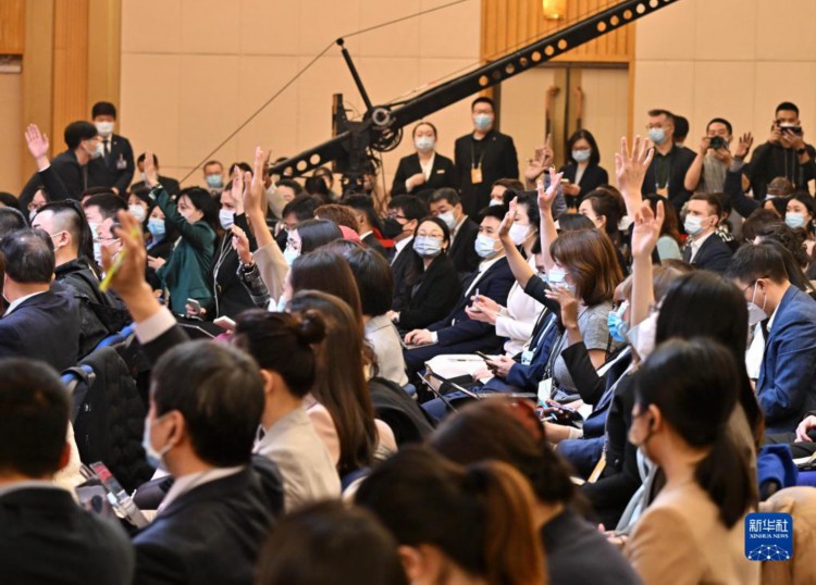 3月7日,十四届全国人大一次会议在北京梅地亚中心多功能厅举行记者会,外交部长秦刚就“中国外交政策和对外关系”相关问题回答中外记者提问。这是记者在现场举手提问。