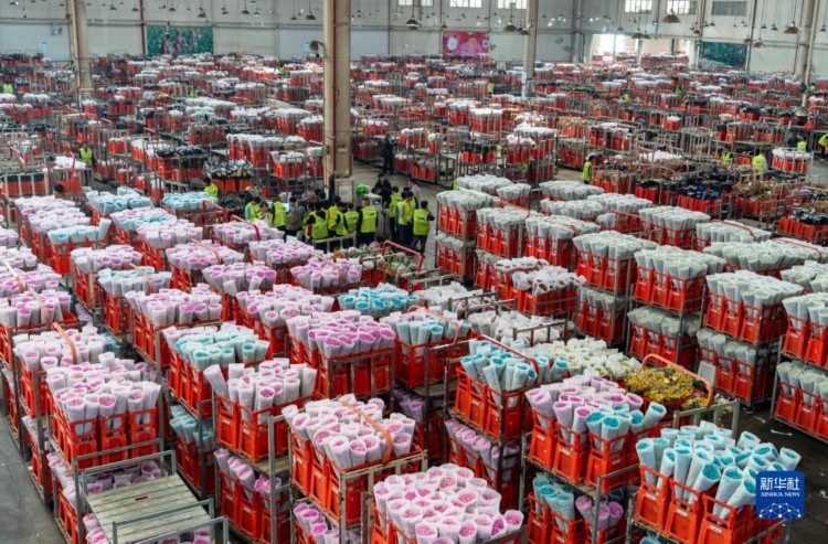 这是3月8日在昆明国际花卉拍卖交易中心拍摄的等待交易的鲜花。 随着“三八”国际劳动妇女节到来,位于云南省昆明市的斗南花卉市场迎来了兔年春节后的又一个鲜花交易热潮。作为亚洲最大的鲜切花交易市场,斗南花卉市场年交易量超过110亿枝,成为我国鲜花交易的“晴雨表”“风向标”。 新华社记者 陈欣波 摄
