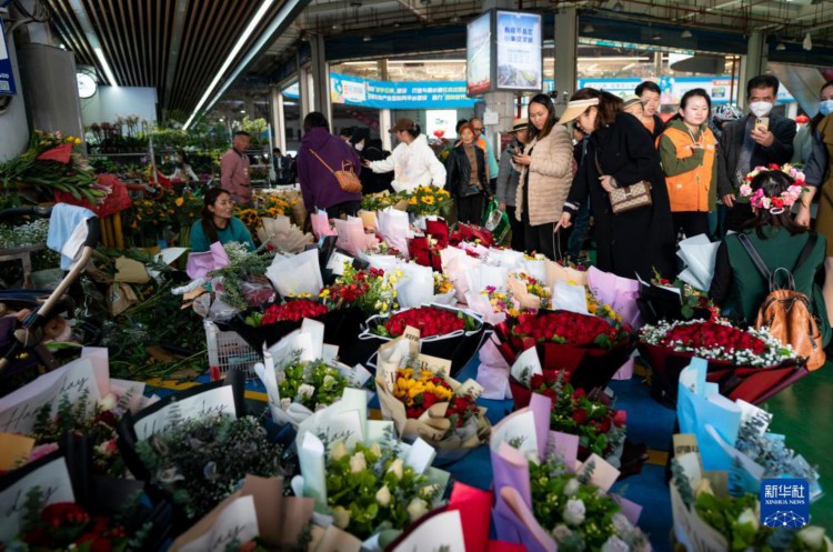 3月8日,游客在昆明斗南花卉市场内选购鲜花。 随着“三八”国际劳动妇女节到来,位于云南省昆明市的斗南花卉市场迎来了兔年春节后的又一个鲜花交易热潮。作为亚洲最大的鲜切花交易市场,斗南花卉市场年交易量超过110亿枝,成为我国鲜花交易的“晴雨表”“风向标”。 新华社记者 陈欣波 摄