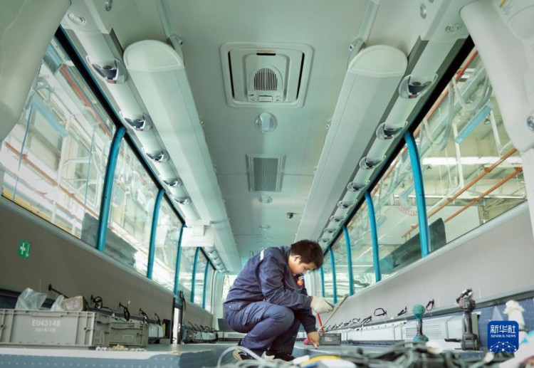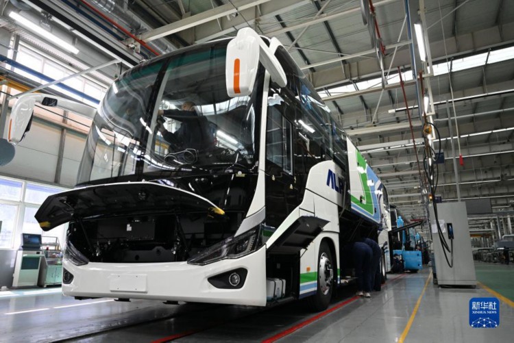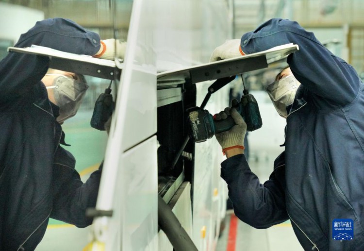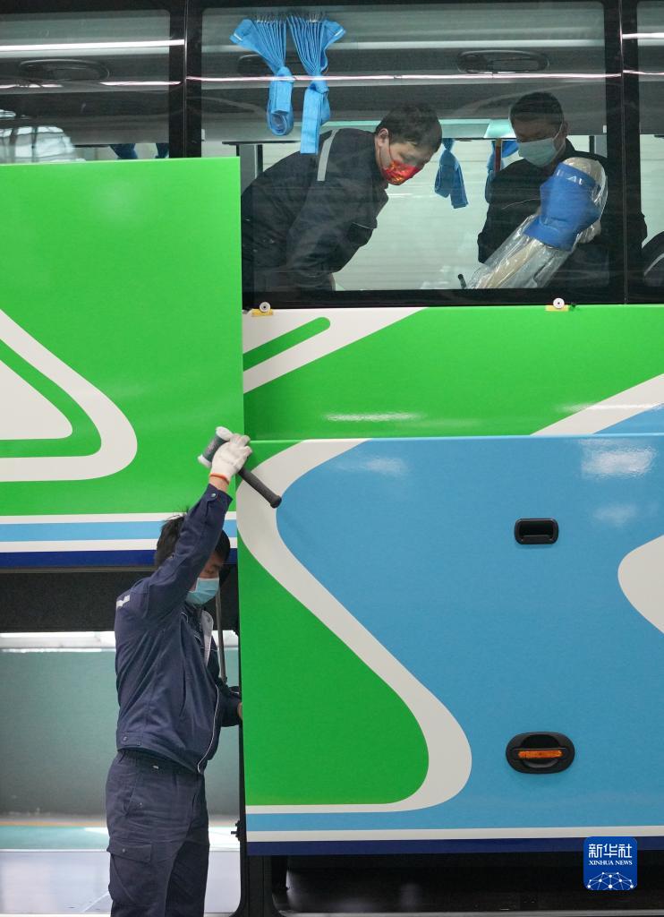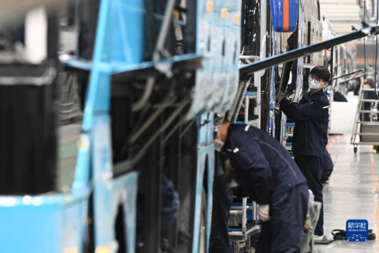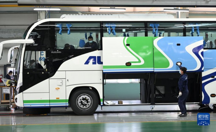 近日,在位于河南省郑州市的宇通新能源厂区高端及海外承装车间里,工作人员在流水线上忙碌地赶订单生产。今年以来,宇通客车海外出口持续走热,相继获得多个海外订单。据介绍,截至目前,宇通客车已远销30多个国家和地区。
