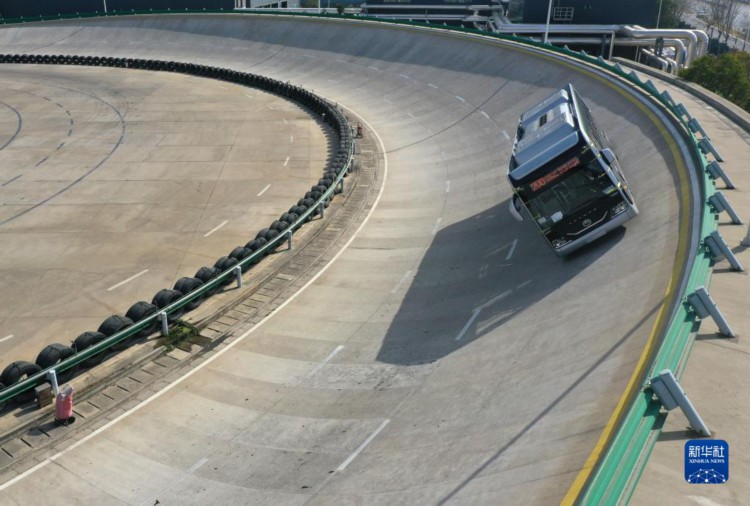 3月8日,一辆客车在宇通新能源厂区试验场内测试。