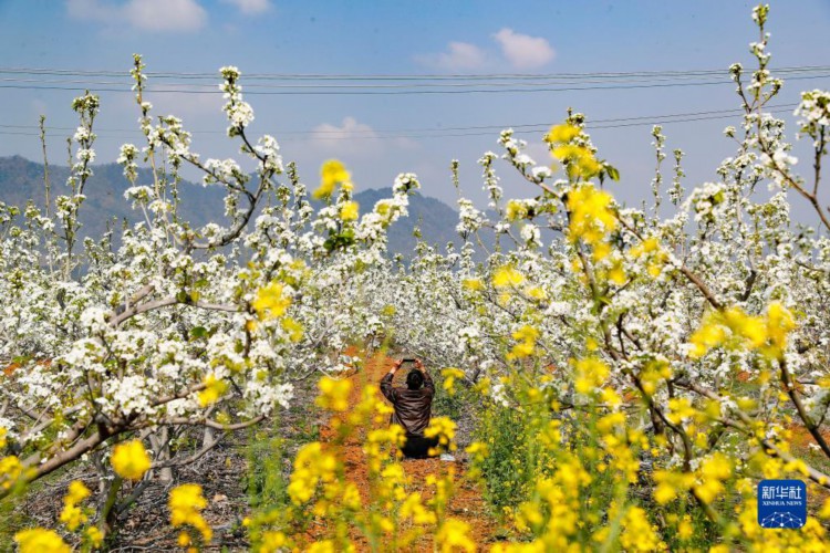 近日,广西柳州市融安县潭头乡梨花盛开,吸引游人前来游玩拍照。