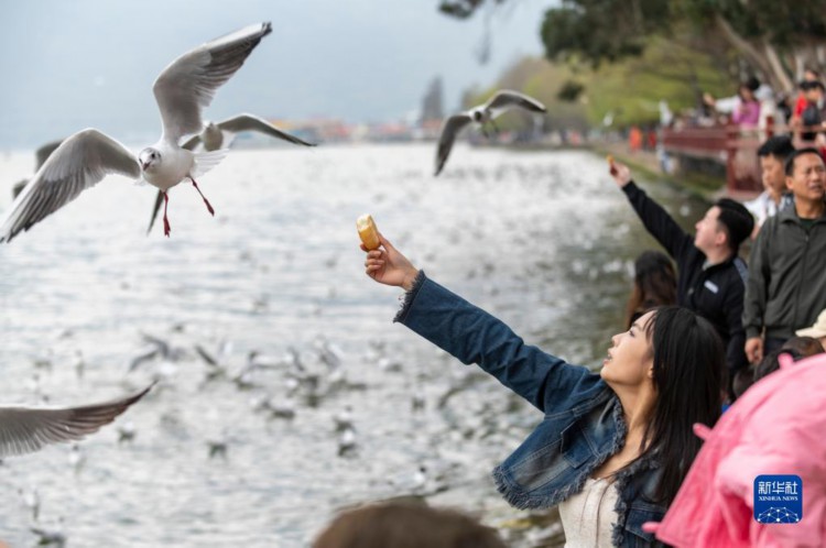 随着天气转暖,栖居春城昆明越冬的红嘴鸥陆续迁徙北返。不少游客到滇池边观鸥喂鸥,为红嘴鸥送行。