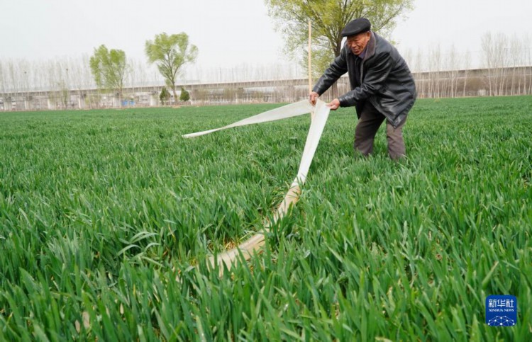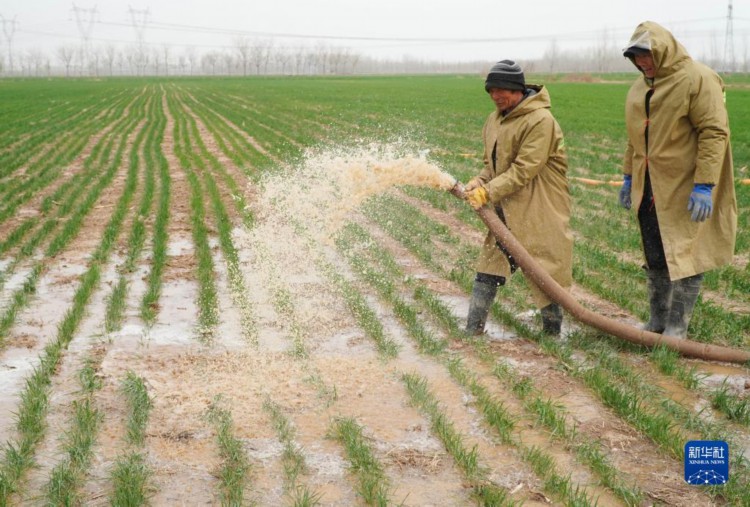 3月15日,在山东省菏泽市牡丹区,田里的小麦浇上了“返青水”。 近日,随着山东多地天气逐渐转暖,小麦陆续进入返青期,种植户紧抓农时给小麦浇水、施肥,为夏粮丰收打好基础。 新华社记者 徐速绘 摄