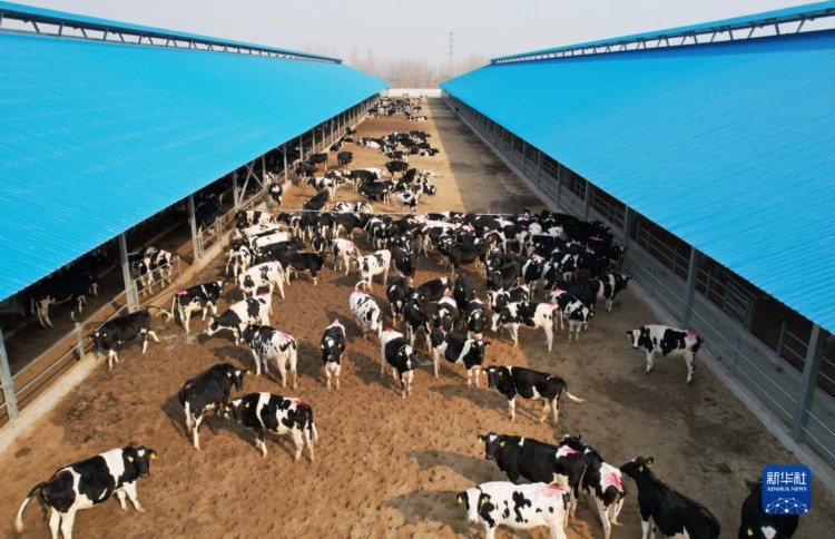 3月15日拍摄的秦皇岛市抚宁区留守营镇一家奶牛养殖企业(无人机照片)。 近年来,河北省秦皇岛市抚宁区采取“龙头畜牧企业+合作社+农户”模式,规模化发展生猪、奶牛、鸡等畜禽养殖产业,促进农民增收。据介绍,目前该区现存栏猪牛鸡等畜禽190多万头(只)。 新华社记者 杨世尧 摄
