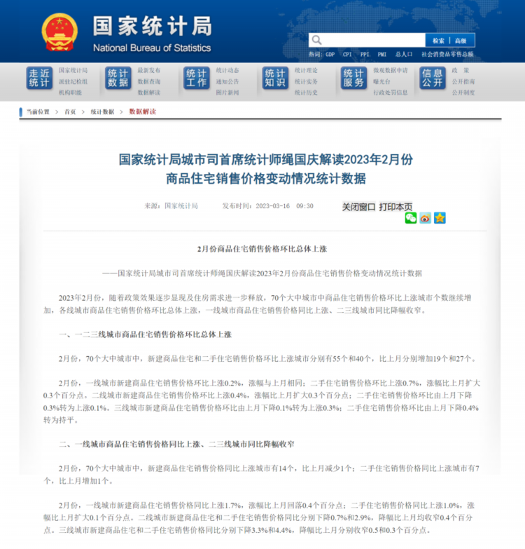 ——国家统计局城市司首席统计师绳国庆解读2023年2月份商品住宅销售价格变动情况统计数据