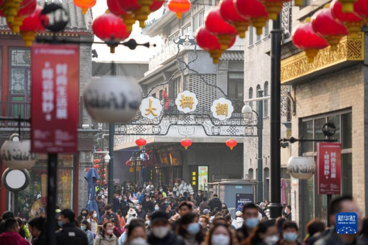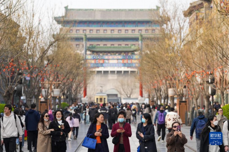 3月19日,游客在北京前门大街商圈游玩。 当日,北京前门大街商圈游人如织,众多市民游客在这里参观游览。 新华社记者 鞠焕宗 摄