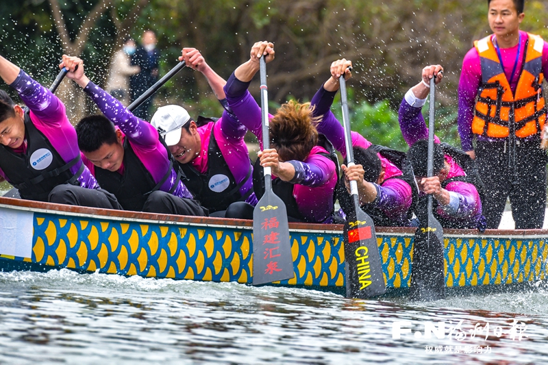福建汇泉龙舟队在比赛中。记者 陈暖 摄