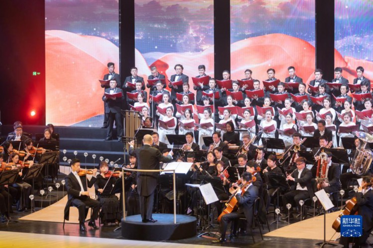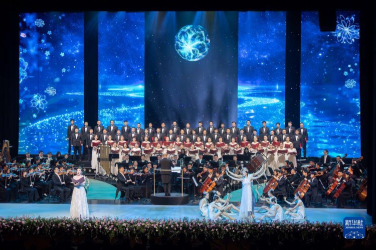 3月20日在上音歌剧院拍摄的上海之春国际音乐节开幕演出《复兴的大地——献给新时代的交响诗》。 当日,第38届上海之春国际音乐节开幕仪式及开幕演出《复兴的大地——献给新时代的交响诗》在上音歌剧院拉开帷幕。本届音乐节以“圆梦新征程”为主题,将举办42台演出项目,其中包括32台音乐演出和10台舞蹈演出。 新华社记者 王翔 摄