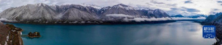 这是3月19日拍摄的巴松湖(无人机拼接照片)。 巴松湖位于西藏自治区林芝市工布江达县,清澈的湖水在雪后银色山林的掩映下格外美丽。 新华社记者 姜帆 摄