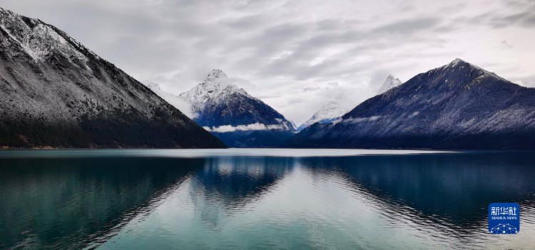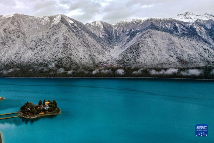 这是3月19日拍摄的巴松湖(无人机照片)。 巴松湖位于西藏自治区林芝市工布江达县,清澈的湖水在雪后银色山林的掩映下格外美丽。 新华社记者 姜帆 摄