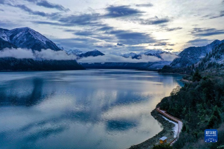 这是3月19日拍摄的巴松湖(手机照片)。 巴松湖位于西藏自治区林芝市工布江达县,清澈的湖水在雪后银色山林的掩映下格外美丽。 新华社记者 沈虹冰 摄
