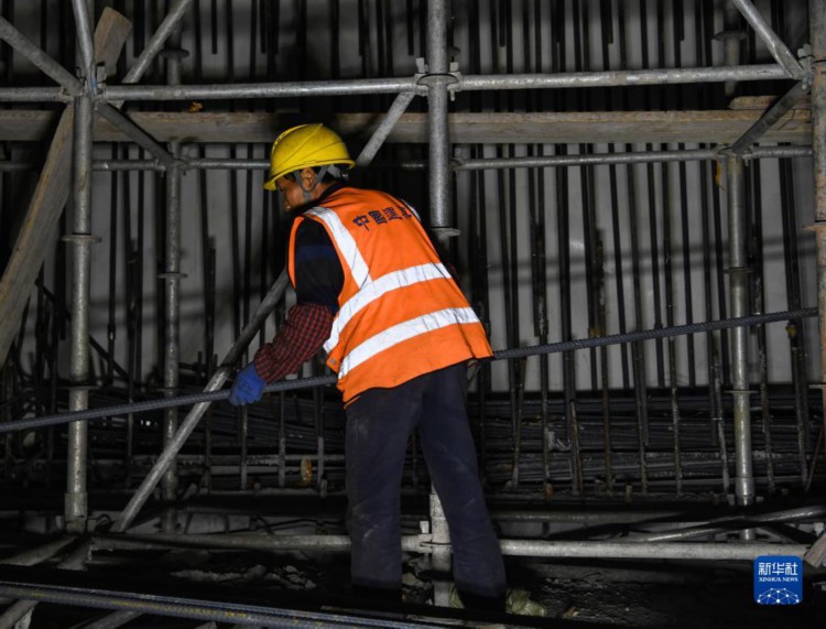 3月21日,在成都地铁27号线金府站,中建三局的施工人员在进行地下站房作业。