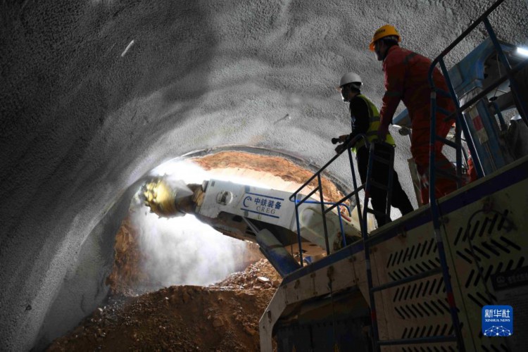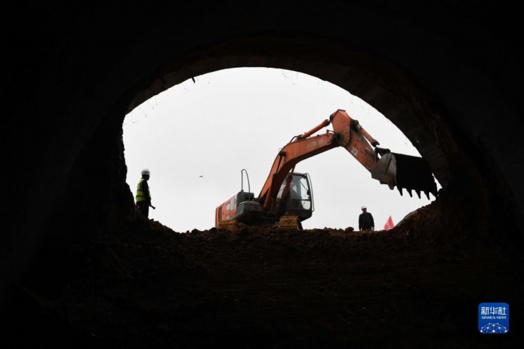 3月21日,中铁四局施工人员在巢马城际铁路新大金山隧道进行贯通施工。 当日,由中铁四局承建的巢马城际铁路新大金山隧道顺利贯通,为后续工程施工奠定基础。全长约532米的新大金山隧道位于安徽省马鞍山市境内,为单线有砟铁路隧道,是全线首座贯通的隧道。巢马城际铁路是国家“八纵八横”高铁网沪汉蓉快速通道合肥至上海间的重要组成部分,设计时速350公里。 新华社记者 刘军喜 摄