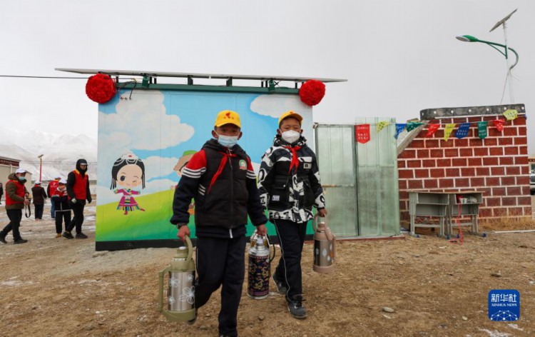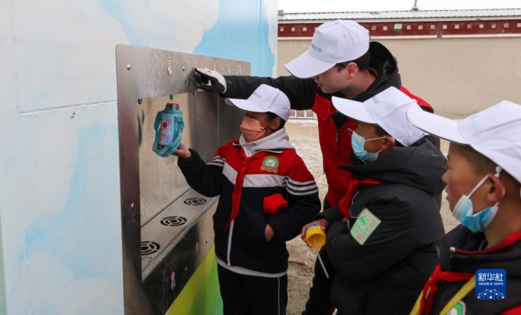 3月21日,那曲市色尼区香茂乡小学的同学们在新启用的净水站打水。 香茂乡小学位于西藏自治区那曲市色尼区,海拔达到4700米,现有学生近400人。近日,中华慈善总会和国家电网杭州供电公司捐赠的太阳能光伏发电纯净水生产设备在这里投入使用,香茂乡小学的师生喝上了可直接饮用的纯净水。 新华社记者 姜帆 摄