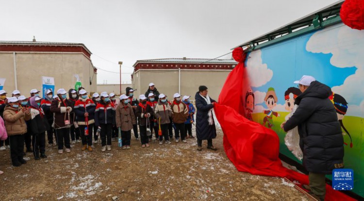 3月21日,西藏慈善总会和捐赠单位的代表为净水站揭幕。 香茂乡小学位于西藏自治区那曲市色尼区,海拔达到4700米,现有学生近400人。近日,中华慈善总会和国家电网杭州供电公司捐赠的太阳能光伏发电纯净水生产设备在这里投入使用,香茂乡小学的师生喝上了可直接饮用的纯净水。 新华社记者 姜帆 摄