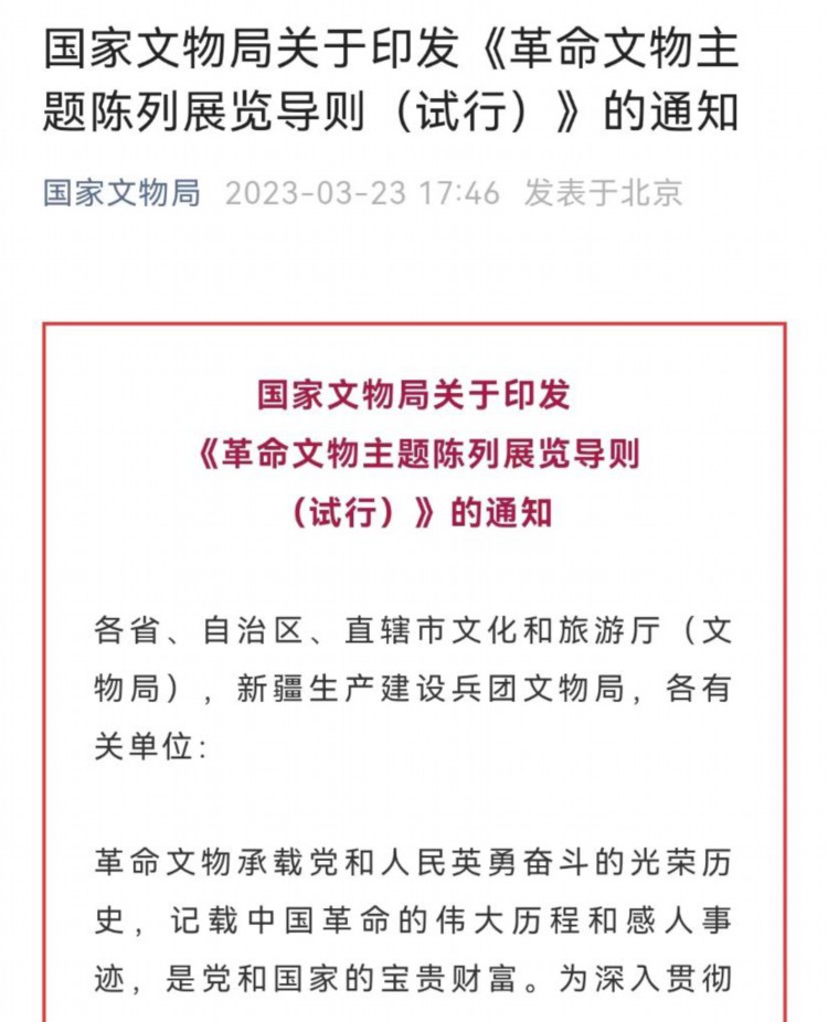 国家文物局:革命文物主题陈列展览应力戒“主题模糊”“千馆一面”