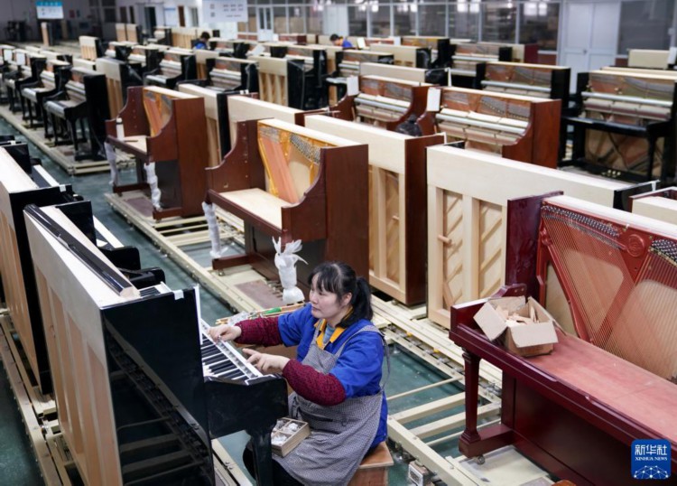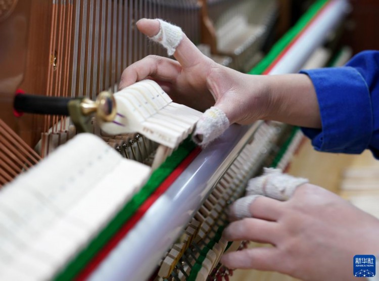 3月23日,工人在德清县洛舍镇东衡村一家钢琴制造企业内装配钢琴。 位于浙江省湖州市德清县洛舍镇的钢琴小镇,是长三角地区较大的钢琴生产基地。近年来,面对市场低迷等不利因素,钢琴小镇110多家钢琴制造及配套企业不断提升产业创新能力和竞争力,通过研发新品、线上销售、合资合营、文旅融合等举措,着力开拓海外中高端市场,弹奏起钢琴产业“转型曲”。据介绍,今年1至2月,钢琴小镇出口同比增长约15%,实现稳健开局。 新华社记者 韩传号 摄