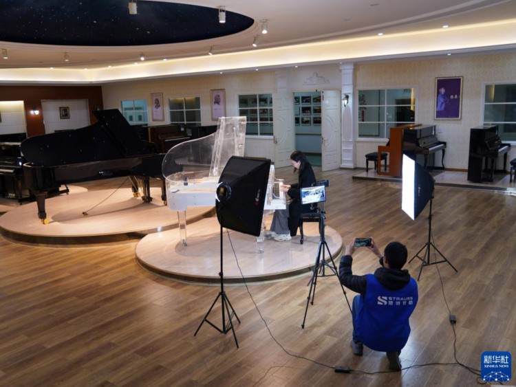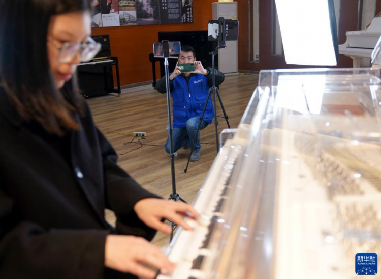 3月23日,德清县洛舍镇东衡村一家钢琴制造企业的工作人员进行直播推介。 位于浙江省湖州市德清县洛舍镇的钢琴小镇,是长三角地区较大的钢琴生产基地。近年来,面对市场低迷等不利因素,钢琴小镇110多家钢琴制造及配套企业不断提升产业创新能力和竞争力,通过研发新品、线上销售、合资合营、文旅融合等举措,着力开拓海外中高端市场,弹奏起钢琴产业“转型曲”。据介绍,今年1至2月,钢琴小镇出口同比增长约15%,实现稳健开局。 新华社发(谢尚国摄)