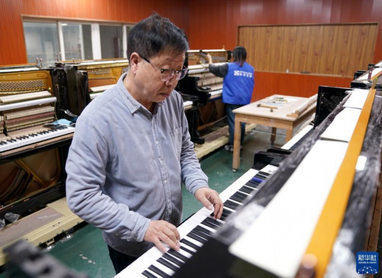 3月23日,来自韩国的钢琴整音师李炳男在德清县洛舍镇东衡村一家钢琴制造企业调试钢琴。 位于浙江省湖州市德清县洛舍镇的钢琴小镇,是长三角地区较大的钢琴生产基地。近年来,面对市场低迷等不利因素,钢琴小镇110多家钢琴制造及配套企业不断提升产业创新能力和竞争力,通过研发新品、线上销售、合资合营、文旅融合等举措,着力开拓海外中高端市场,弹奏起钢琴产业“转型曲”。据介绍,今年1至2月,钢琴小镇出口同比增长约15%,实现稳健开局。 新华社记者 韩传号 摄