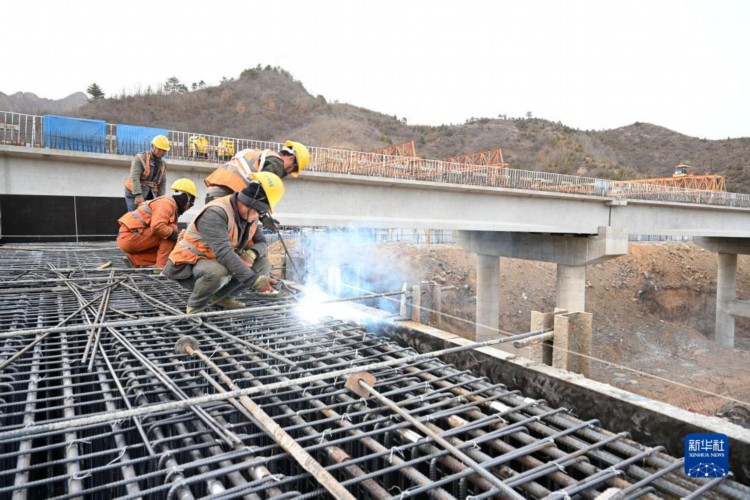 3月23日,工人在承平高速河北兴隆段施工。