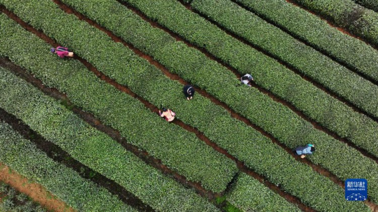 时下,在贵州省遵义市凤冈县永安镇田坝社区的万亩生态茶园基地,茶农抢抓农时采茶,一派繁忙景象。